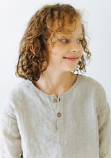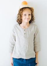 Let your kids feel the breath of nature in this clean,plain linen blouse. Loose and relaxed silhouette contributes to a comfortable wearing experience.