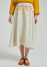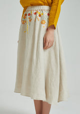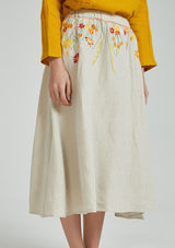 A exquisitely tailored linen skirt with embroidery detailing, elegant and feminine. Wear it with different tops to create different outfits.