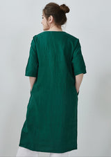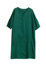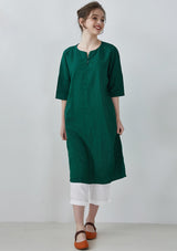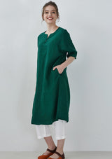 This green linen dress is designed to capture everyone's attention with its simple and neat look.