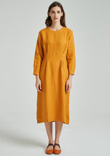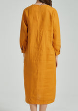 Yellow Back Zipper Linen Dress