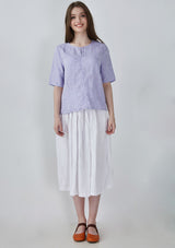 This lavender women’s linen top will make you switch from noisy day to placid night freely.