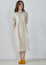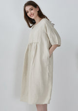 Enjoy a time of peace and happiness with this simple yet extraordinary linen dress. Loose design for a comfortable and casual wearing experience.