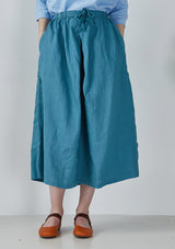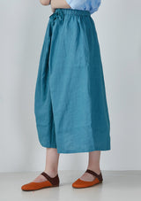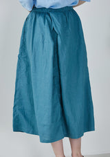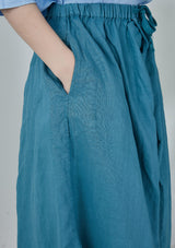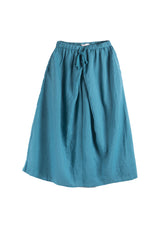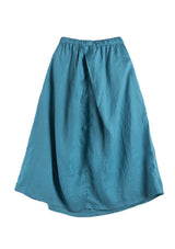 Blue Elastic Waist Ramie Skirt