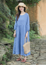 An easy-going plaid linen dress that bring you all day comfort and relax.