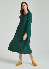 This green linen dress is revealing a calm and peaceful temperament. Relaxed fit for a natural, comfortable wear.