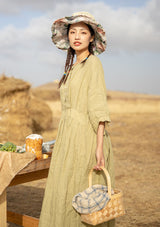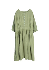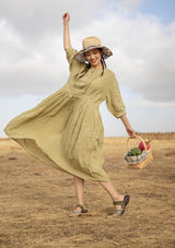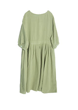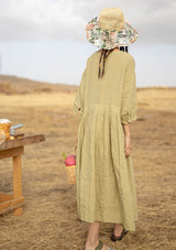 Made in refreshing pea green color, this linen dress exudes some lively and airy feeling