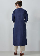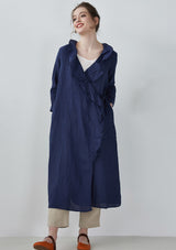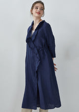 Navy Blue Ruffles Ramie Cardigan