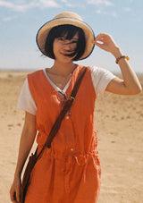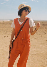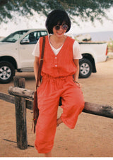 Made with soft linen fabric, this orange jumpsuit is cool and comfortable to wear, suitable for work and vacation.