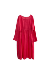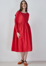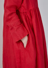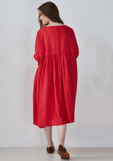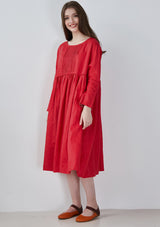 Red Pin Tucks Linen Dress
