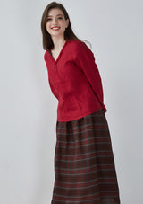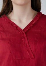 Start an energetic day with this red linen top. Easy pull-over design, relaxed and comfortable.