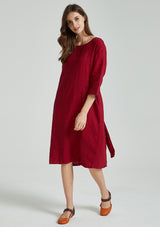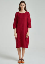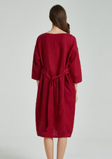 Casual and elegant, this spiffy cutting red dress will keep you energetic all day long. Tie the belt for a feminine look or untie it for a more laid-back look.