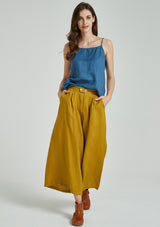Concise yet chic, this linen strap top will take use of all pieces in your wardrobe to create different outfits.