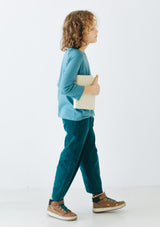 A versatile and easy matching boys wide pants made from soft cotton corduroy fabric, contributing to a enduring comfortable fit.