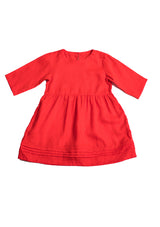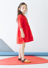 Bring a bright color to your little girl’s wardrobe with this comfortable red linen dress.
